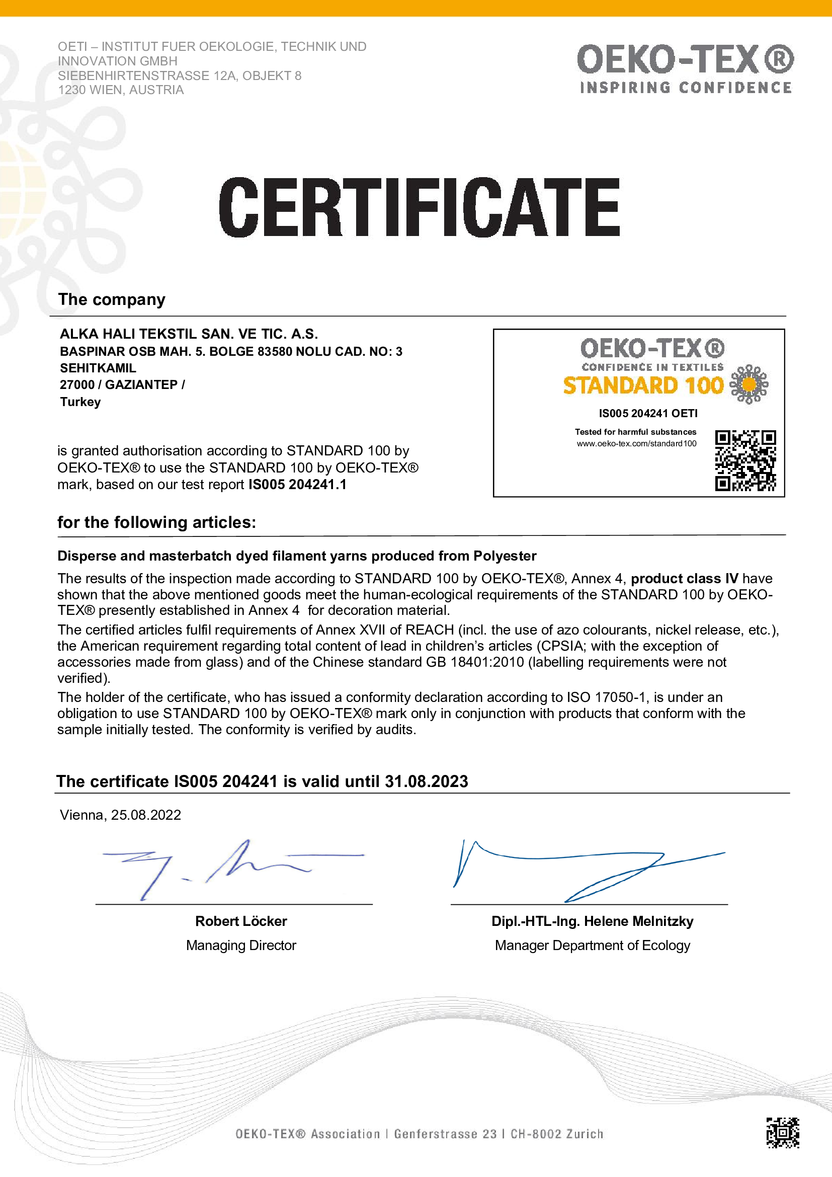 1984 yılından gelen tecrübesi ile 2020 yılında Polyester tesisi kurarak üretim faaliyetlerine başlayan Alka Polyester, günümüz iplik sektöründe dünya markası olma yolunda büyük bir ivme kazanmıştır. Yüksek yatırımları ve yüksek üretim gücüne sahip makinaları ile katlanarak büyümeye devam eden Alka Polyester, sektöründe Lider olma yolunda hızla ilerlemektedir. İç ve Dış piyasada geniş müşteri tabanı ile dünyanın birçok ülkesine ihracat-ithalat yapmaktadır. 15 Ülkede faaliyet gösteren Alka Polyester, Dış piyasada sektörün öncüsü haline gelmiştir.