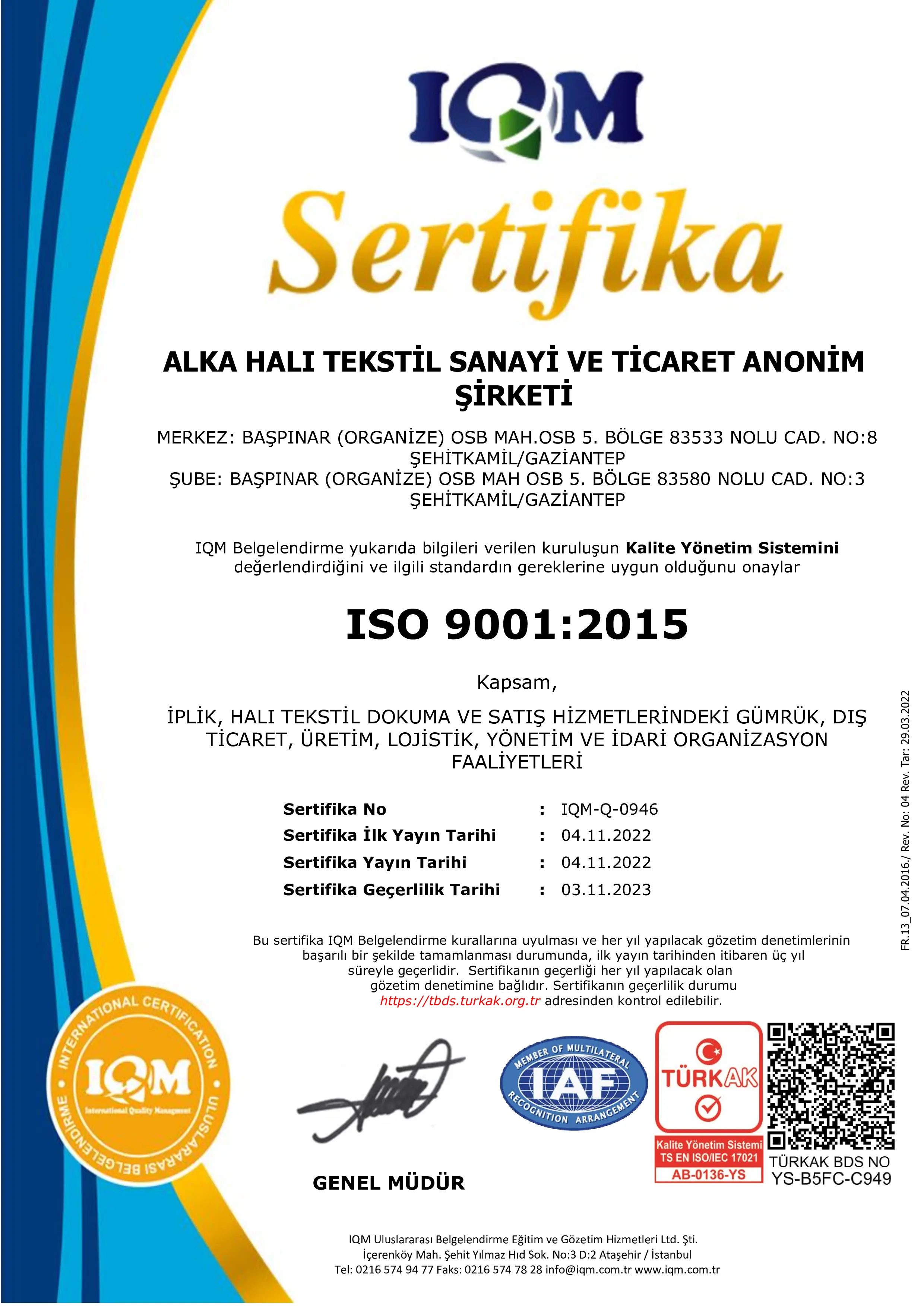 Kalite anlayışı, hammadde tedarikinden itibaren başlamakta ve iplik üretimine kadar gerekli olan tüm testleri içermektedir. Sadece üretim aşamasında bitmeyip satış ve satış sonrası müşteri ilişkileri ve müşteri memnuniyetini de içeren uzun bir süreçtir. Bünyemizde bulunan kalite kontrol birimi ile her aşamada gerekli olan tüm kontroller yapılmaktadır. Üretimin her aşamasında yapılan kontroller ile hem kalite hem de istenilen renk konusunda müşteri memnuniyeti sağlanmaktadır.